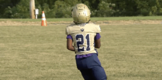 Elijah Barnes (#21) of the Central Penn Crusaders (Pony) is a...